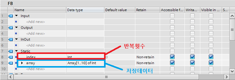 지멘스 SCL 사용해보기 2 안녕하세요 오늘은 SCL을 이용한 여러가지 프로그램 방식을 알아보겠습니다. 2024.12.30 - [PLC/지멘스] - 지멘스 SCL 사용해보기 1 지멘스 SCL 사용해보기 1안녕하세요 오늘은 지멘스 SCL에 대해 알아보겠습니다. 지멘스에는 총 6가지 프로그램 방식이 있습니다.LAD(Ladder)FBD(Function Block Diagram)CEM(Causes and Effects Matrix)STL(Statement List)SCL(Structured Control Languageyongyong22.tistory.com 오늘 알아볼 SCL 프로그램 방식은 총 4가지 입니다.FOR (반복문)REPEAT (반복문)WHILE (반복문)CASE1. FORFor문 입니다. 다른 PLC에서도 FOR-NEXT문은.. PLC/지멘스 2024.12.31